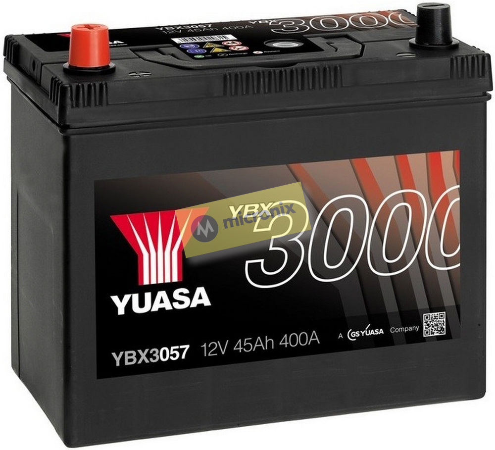 YBX3057 12V/45Ah 400A(EN) bezúdržbová autobatérie YUASA. Výhradný dovozca firma MICRONIX, spol. s r.o. Automobilové batérie posielame prepravnou službou GEIS.