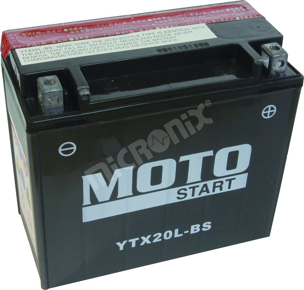 Olovená bezúdržbová batéria MS-YTX20L-BS MF/Ca (Maintenance Free), vysoký štartovací prúd, nízke samovybíjanie.