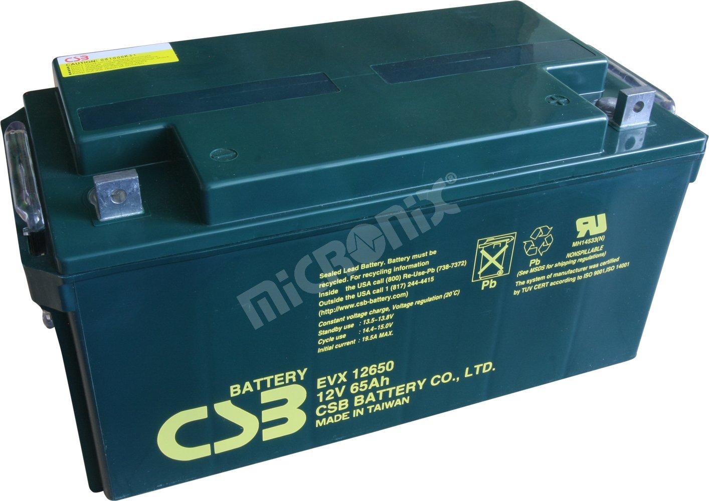 EVX12650 12V 65Ah – záložný, bezúdržbový, VRLA, uzatvorený, akumulátor od CSB Battery. Technológia AGM. Určený pre cyklickú prevádzku. Výhradný dovozca firma MICRONIX, spol. s r.o.