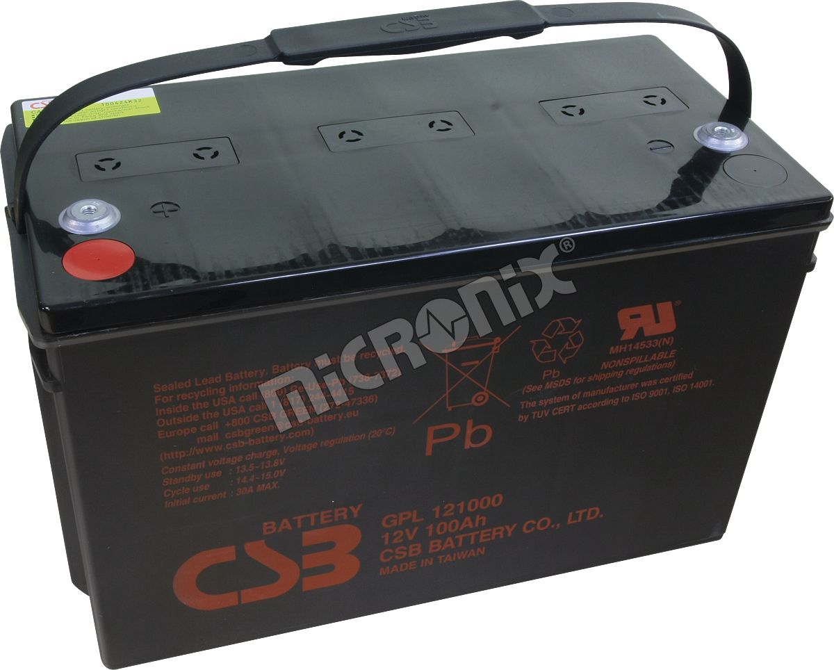 GPL121000 12V 100Ah - záložný, bezúdržbový, VRLA, uzatvorený akumulátor od CSB Battery. Technológia AGM. Určený pre záložné zdroje UPS, EZS, EPS a pod. Výhradný dovozca firma MICRONIX spol. s r.o.
