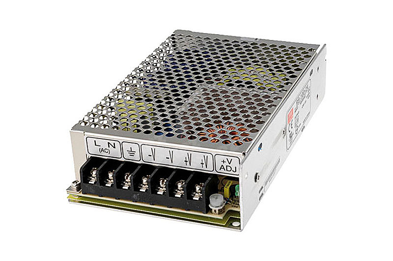 Impulzný napájací zdroj Mean Well v kovovej krabičke so svorkovnicou určený na napájanie v náročných podmienkach.