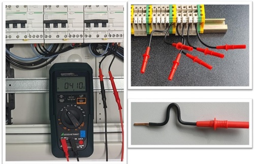 Adaptér AdaBV140 slúži na pripojenie meracieho zariadenia ku svorkovnici. Je vyhotovený z pevnej medi 2,5mm2 (priemer 1,7mm), dĺžka 10cm. Zakončený je vstupnou zdierkou pre štandardný 4mm banánik.
