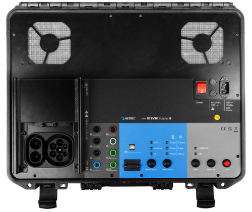 Adaptér A 1732 DC EVSE je určený na testovanie elektrickej bezpečnosti a funkčnosti nabíjacích staníc Mode 4 (DC EVSE) aj Mode 3 (AC EVSE).