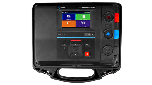 MI 3211 TeraOhmHP 10 kV je vysokovýkonný, prenosný, batériou alebo sieťou napájaný testovací prístroj s vynikajúcim krytím IP (IP65), určený na analýzu izolačného odporu pomocou vysokých jednosmerných testovacích napätí až do 10 kV. Vďaka svojej robustnosti (kategória merania CAT IV) a vysokej odolnosti voči vyžarovaným EM poliam sa najlepšie hodí do náročných priemyselných prostredí. Manipulácia s dotykovou obrazovkou alebo klávesmi cez LCD displej umožňuje jednoduchý a prehľadný výber rôznych metód merania a jednoduché zadávanie údajov. Novo navrhnuté meracie káble majú kódované banánkové konektory pre správne pripojenie a uzamknutie, aby boli chránené pred nechceným alebo náhodným vybratím.
