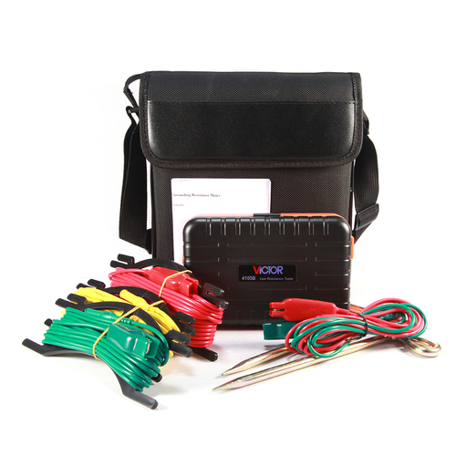 Merač zemných odporov, kompletná dodávka (2 ks pomocné zemné sondy, meracie káble, taška).